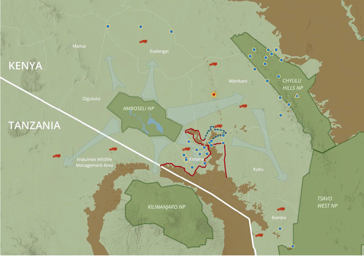 Das Weidegebiet nördlich von Amboseli bis zu den Chyulu Hills und dem Tsavo-West Nationalpark im Osten und im Süden bis zum Kilamanjaro Nationalpark ist ein zentraler Verbindungspunkt für wandernde Wildtiere und beherbergt einige der wichtigsten verbliebenen Lebensräume in Afrika.
