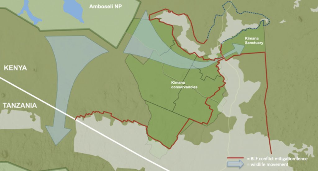 Der Kimana-Korridor ist die am stärksten genutzte Route für Tiere, die in den und aus dem Amboseli Nationalpark und dem Kimana Schutzgebiet wandern, das mit dem Osten des Ökosystems und dem Tsavo-West Nationalpark verbunden ist. Die Ranger von Big Life tragen auch zum Schutz des Korridors und des Schutzgebiets bei und sorgen so in mehrfacher Hinsicht für eine sichere Passage durch das Ökosystem. An seiner schmalsten Stelle ist dieser Korridor nur 70 Meter breit, wird aber von einigen der grössten Elefanten der Welt durchquert. Ein Beispiel für die Arbeit von Big Life im Schutzgebiet ist der Bau eines mehr als 50 km langen Zauns zur Minderung von Konflikten zwischen Menschen und Elefanten entlang der südlichen Grenze der Kimana-Korridor Schutzgebiete, wo Weideland an Ackerland an den Hängen des Kilimandscharo grenzt.